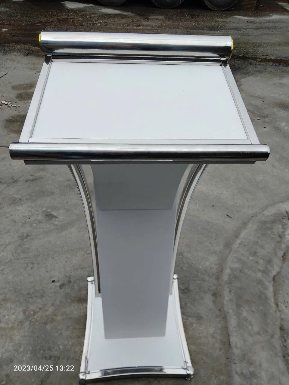 - Mặt bục phát biểu inox có thiết kế đủ chắc chắn để đặt tài liệu, micro hoặc laptop.