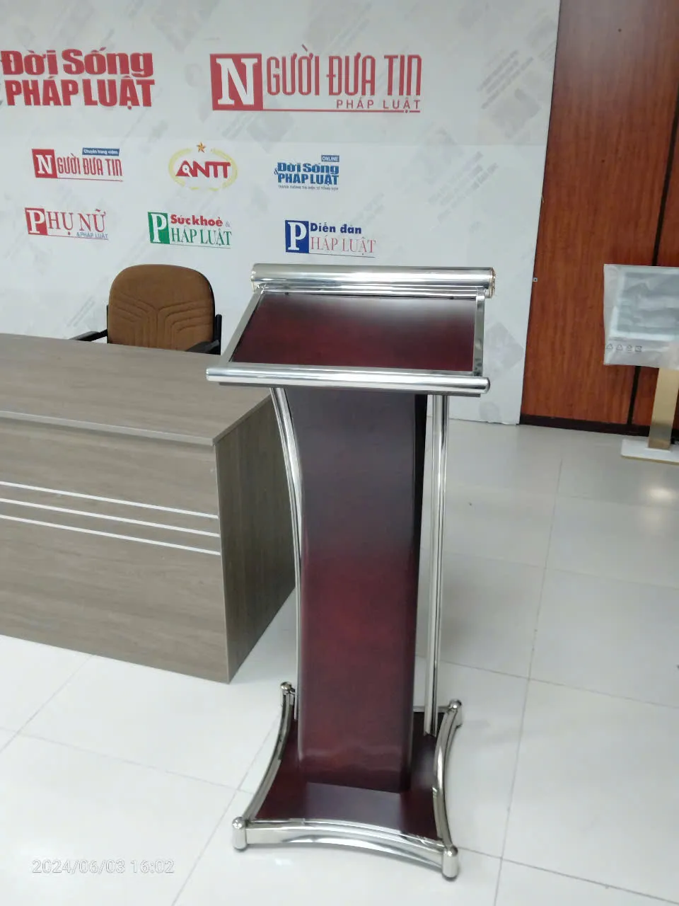 Bục phát biểu không chỉ đẹp mà còn cực kỳ tiện lợi. Mặt bục rộng rãi, đủ chỗ để tài liệu, laptop hay micro. Không còn cảnh loay hoay tìm chỗ đặt giấy khi đang phát biểu.